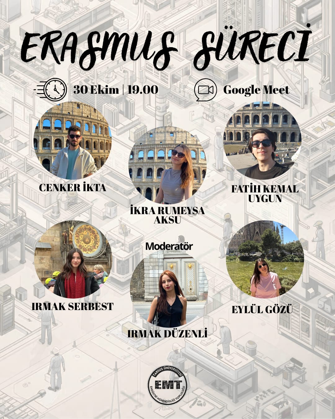 Endüstri Mühendisliği Öğrenci Topluluğu Erasmus konusunda deneyimli öğrenciler, Erasmusa katılmayı düşünen öğrenciler için süreçle ilgili bilgilerini ve tecrübelerini paylaştılar.