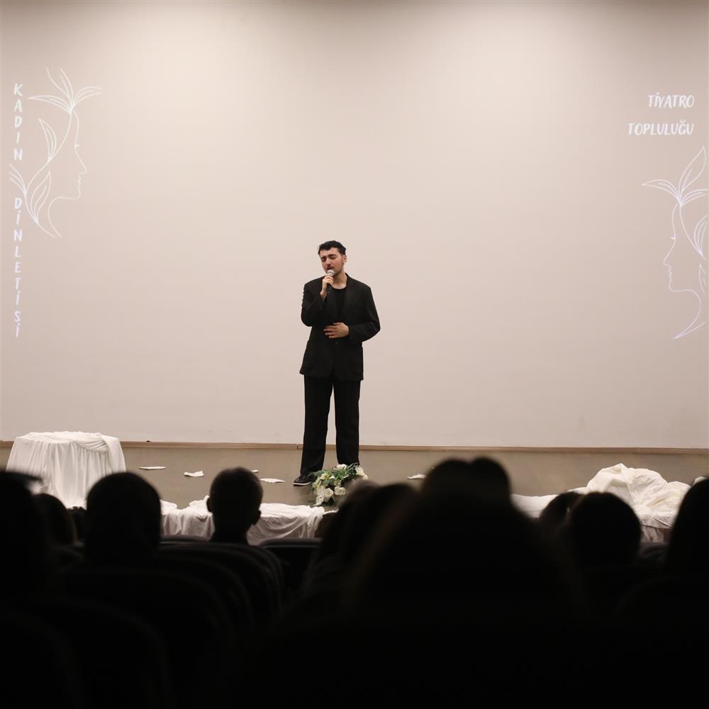 Tiyatro Topluluğu, 8 Mart Dünya Kadınlar Günü dolayısıyla toplumun her kesiminin şiddet konusunda sorumluluk alınmasına teşvik edilmesi ve cinsiyet eşitliği konusunda farkındalık yaratılması amacıyla "Kadın Dinletisi" etkinliği düzenledi.