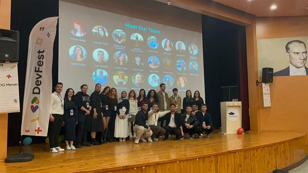 Roket Teknolojileri, Uluslararası Ticaret ve Lojistik, IEEE, Yapay Zeka ve Dijital Dönüşüm, Havacılık ve Uzay, Sosyal Dönüşüm, Endüstri Mühendisliği ve Oyun Kulübü Öğrenci Topluluklarından öğrencilerimiz, 6 Aralık 2025 tarihinde Mersin’de düzenlenen “Google Developer Group Mersin – DevFest 2025” etkinliğine katılım sağladı. Yenişehir Akademi’de gerçekleştirilen organizasyonda öğrenciler, teknoloji ve yazılım dünyasının güncel gelişmelerini yakından takip etme fırsatı buldu.
